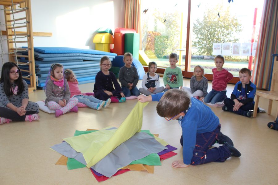 Jeden Dienstag treffen sich "die Großen" aus allen Gruppen um 8.30 Uhr in der Turnhalle zu gemeinsamen Aktivitäten. Diese dienen der Stärkung der Zusammengehörigkeit.